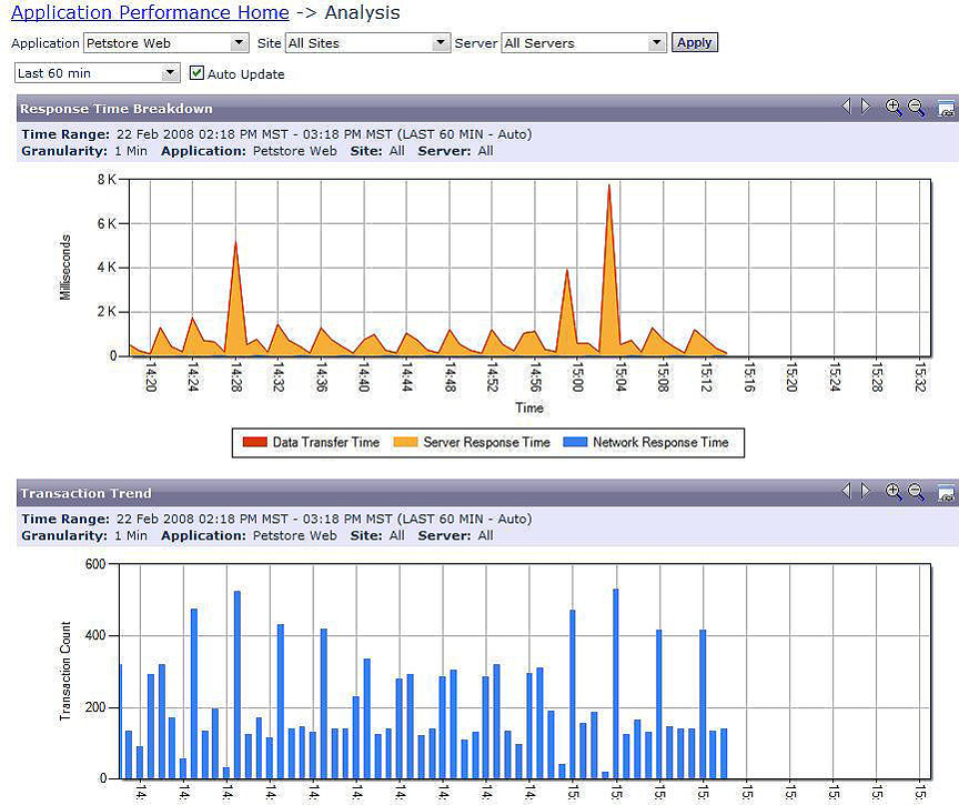 • 应用流量和事务取证引擎提供详细的响应时间分析。